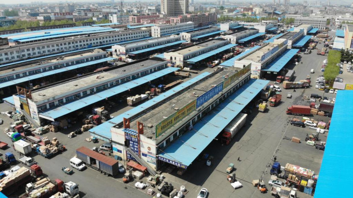 这是4月14日拍摄的临沂市兰山区的山东金兰物流基地。新华社记者王凯摄