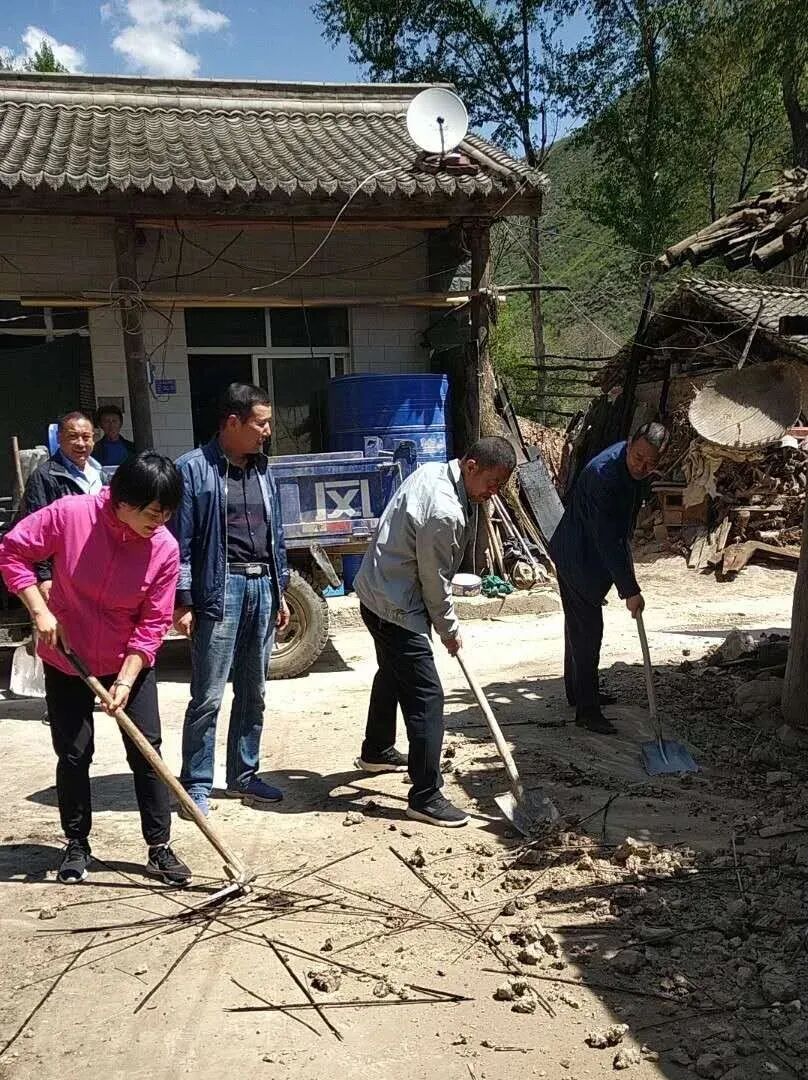 第二天,苟罗英家党旗飘扬,人声鼎沸,全村的公益性人员、帮扶队、包村干部、村“两委”班子齐上阵,抬家具、溜瓦片、挖墙角……不到两小时,三间危房被清理的平平整整。