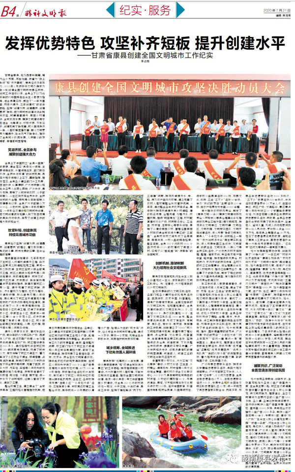 编者按:7月21日,由中央文明办指导、专门宣传报道社会主义精神文明建设的全国唯一纸质平面媒体《精神文明报》B4版整版刊发了《发挥优势特色 攻坚补齐短板 提升创建水平 ——甘肃省康县创建全国文明城市工作纪实 》一文,现将全文转载如下: