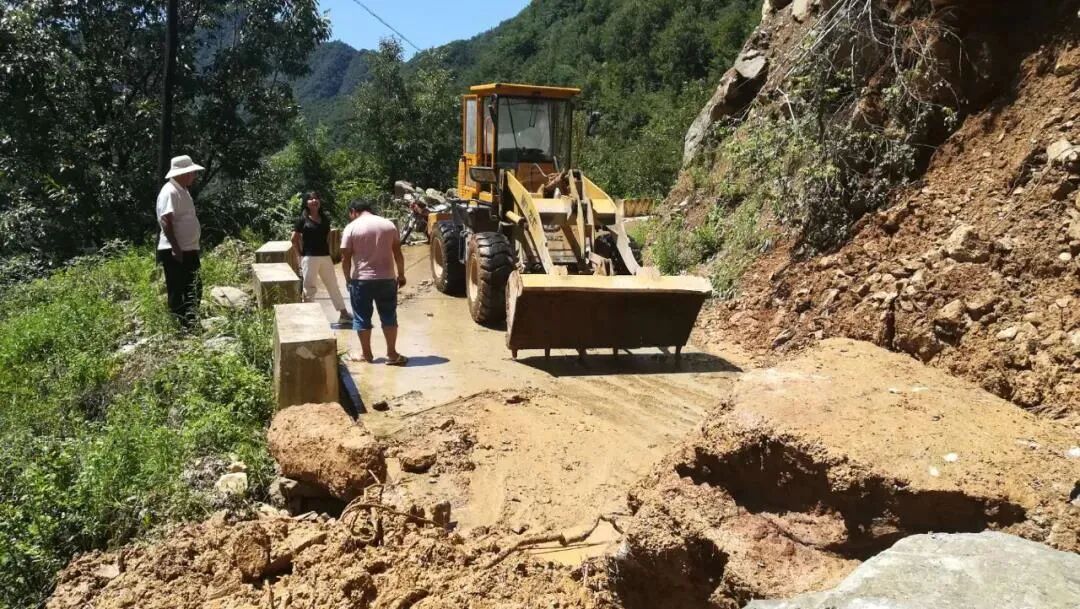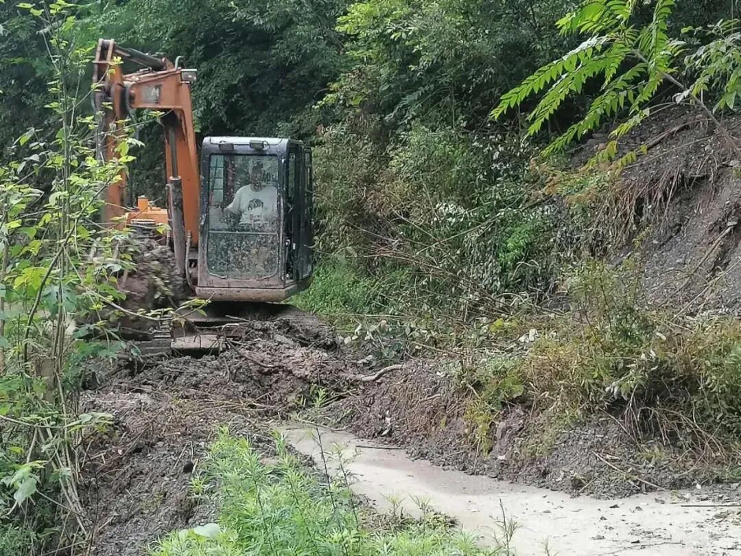 三河坝镇动用大型机械抢通道路。