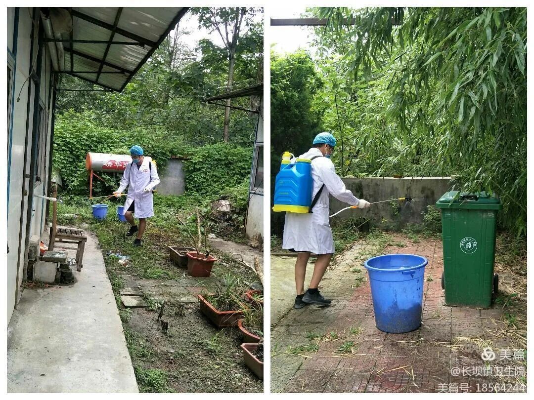 长坝卫生院对民房、街道垃圾点、学区、市场等重点区域消杀。