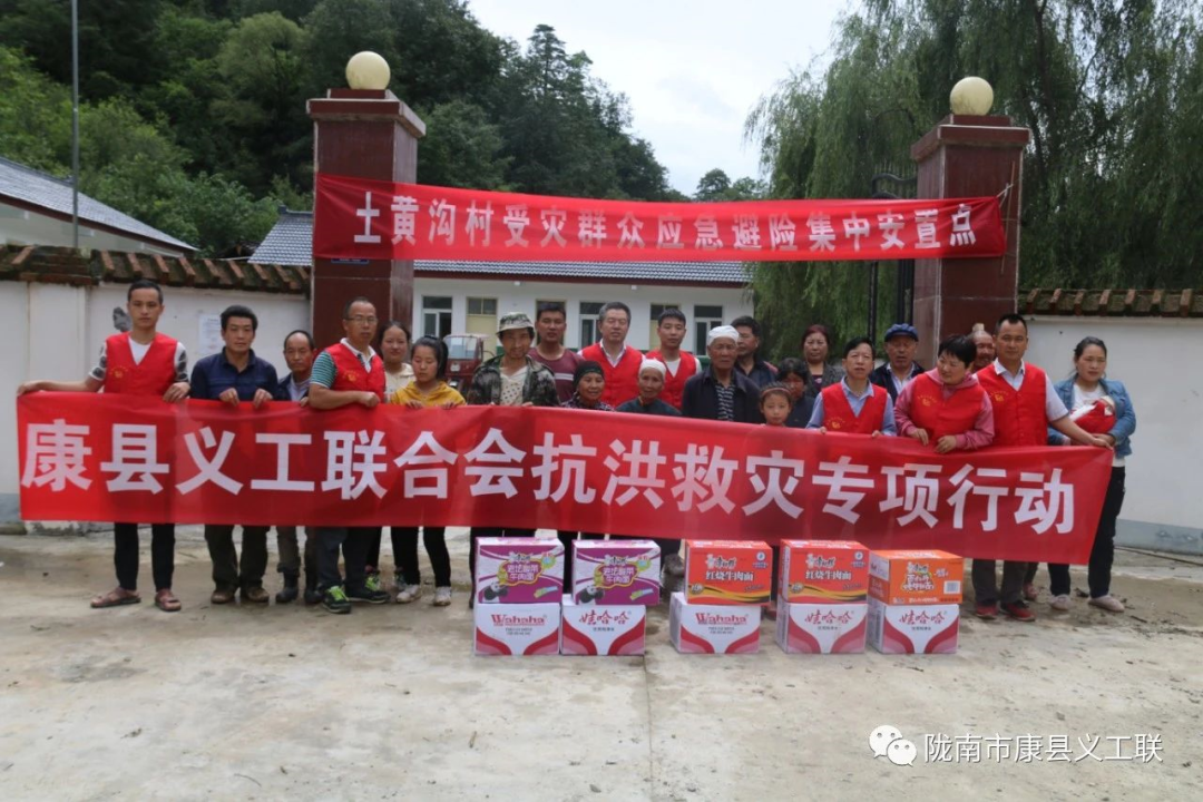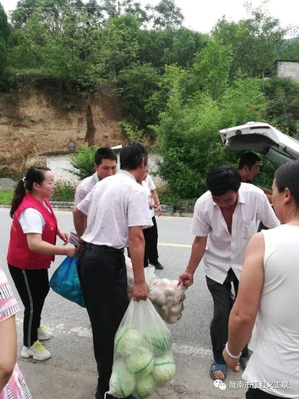 康县义工联合会灾害比较严重的地区送去紧急募集到的救灾物资(方便面、馒头、蔬菜、多功能充电灯和矿泉水等)。