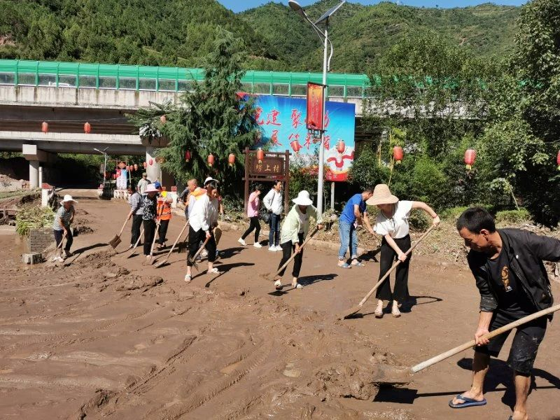 城关镇组织镇村干部与群众一起清理淤泥。