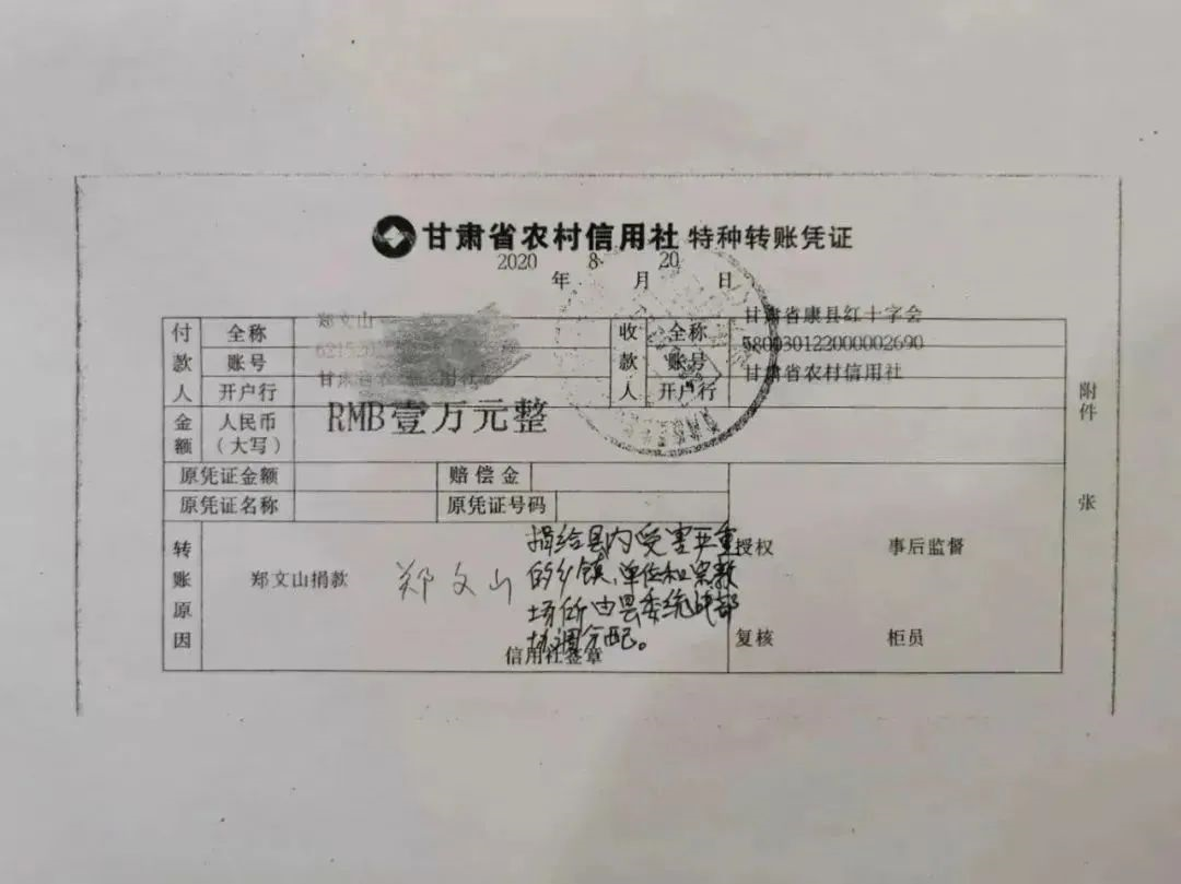 康县兴源土特产商贸有限责任公司通过县红十字会向本次受灾严重的乡镇、单位、宗教场所捐赠人民币10000元。