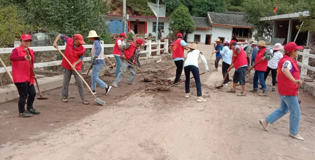 城关镇新时代文明实践所组织志愿者和群众,重建美丽家园。