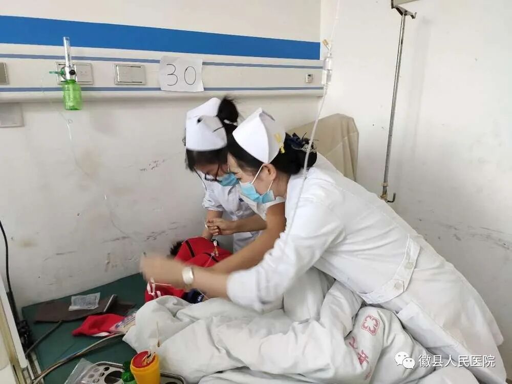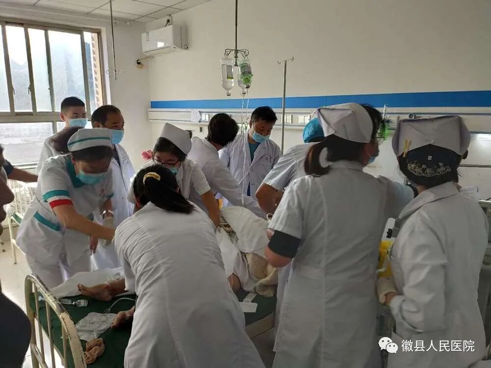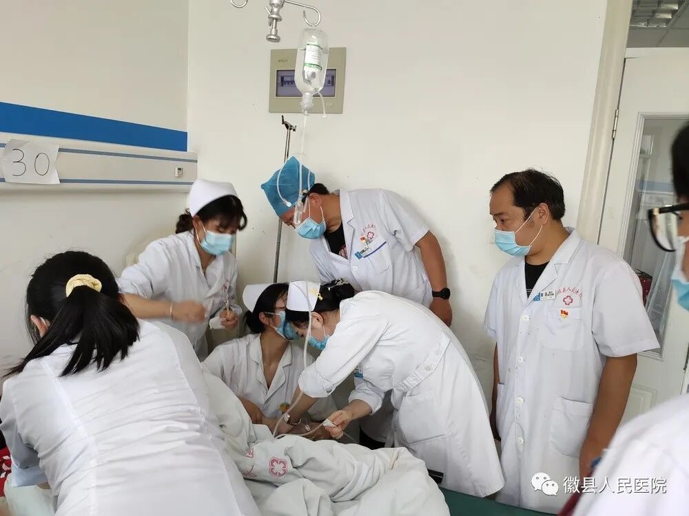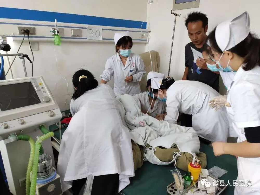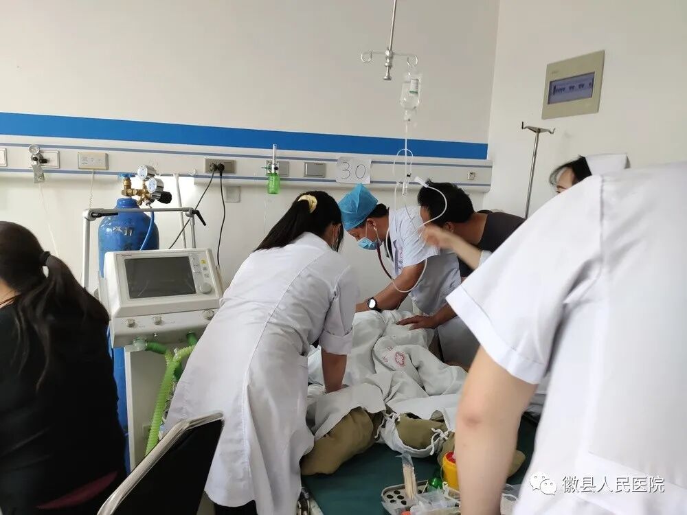 抢救现场忙碌而有序,医护人员各施其职,默契配合,但他们额头上的汗珠和紧锁的眉头还是透露出病人的抢救不容乐观。在与家属沟通过程中,大家的表现让广大医务工作者很是欣慰和感动!“医生,请你们积极救治!我们都看到医院在积极努力了!我们信任你们!”,“医生请你们救救杜大妈,她是一个热心的好人,我们保洁公司愿尽力支持!”,被救儿童的爸爸更是激动地说:“杜大妈救了我儿子一条命啊!我们就是倾尽一切也要救她!”。抢救一刻不停,随着急救药物的进入,胃内积水的排出,呼吸道的清理干净,杜大妈的情况渐渐有了好转,呼吸有了改善,不再是叹息样呼吸(呼吸衰竭的一种表现),口唇也不再发青,血氧饱和度由刚入院时的56%渐渐上升到了80%,90%,96%,散大的瞳孔也有所恢复!经过近一个小时的全力抢救,杜大妈的意识有了一点恢复!朦朦胧胧中的她含含糊糊地喊出了第一句话:“娃!救娃!”,现场的医护人员一边流泪一边安慰她:“杜大妈,你放心,孩子救过来了,就在你的旁边躺着呢!”。由于大脑缺氧性损伤,意识不完全清醒,在随后的一段时间里,杜大妈只要清醒一点,就会反复地喊:“救娃!”,这最最朴实无华的喊声深深地震撼着在场的每个人,她就是我们身边最可爱的人!没有漂亮的外表,却有纯洁的心灵!其实在徽县这片土地上,有着许许多多像杜大妈这样的人,平常时就是咱们身边不显眼的普通人,做着日常工作,过着随意的生活,当突发的意外发生时,他们会爆发出巨大的能量!他们的身影出现在抗击疫情的各条战线,出现在抗洪救灾的第一线,出现在扶贫帮扶的农家地头,出现在扶起一个摔倒老人的街边,出现在……,这是我们社会的主旋律!这是我们每个人都需要的正能量!现在杜大妈已经转危为安,她还要和医护人员一起继续抗击随后可能会出现的脑水肿,肺水肿,肺部感染,消化道出血等等并发症,我们希望杜大妈顺利康复!我们也希望杜大妈的精神得到社会认可,得到发扬光大!让我们的徽县更加美丽!