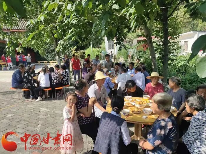 尊老尽孝一直是中华民族的传统美德,如何尊老敬孝也是新时代文明实践重点工作之一。为了将这一美德继续弘扬,寺台镇不仅有“爱心理发”“爱心洗衣”,更有“孝善宴”。在寺台镇,志愿者们会为60岁以上的老人准备餐肴,老人们在核桃树下围桌而坐,拉家常,吃美食,还可以欣赏由志愿者们自发组织的文艺表演。