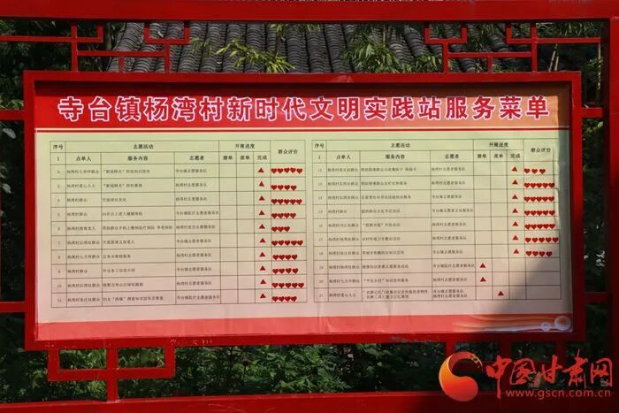 在康县,“点单”这个词,可不仅仅用于餐桌之上。只要有需要,群众就可以“点单”,“接单人”会根据群众需要,责任到人,帮助群众解决问题,完成自己的“任务单”。寺台镇杨湾村就有一块新时代文明实践站服务菜单,这张“菜单”上标注着近期群众所需,接受这项工作的志愿者队伍与完成情况。