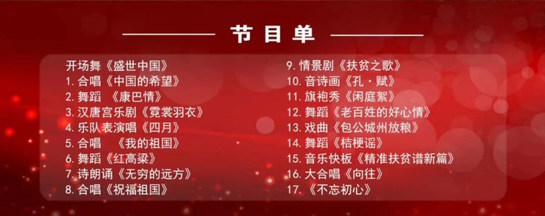 今年是脱贫攻坚的收官之年,我们将告别贫困,与全省全国一道步入小康,陇南人的千年夙愿,圆梦在即。举办此次汇报演出,旨在深入实施文化惠民工程,丰富群众文化生活,积极打造地方特色群众文化品牌、培育本土文化队伍、挖掘本土文化能人、艺人,用歌声笑声表达人民群众对幸福生活的无限热爱与憧憬。