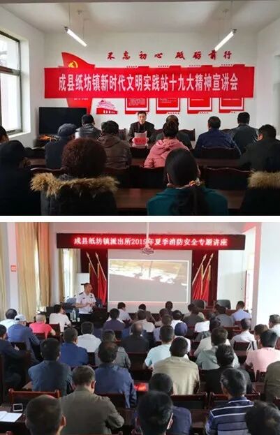 2018年以来,成县纸坊镇党委政府把求实创新推进新时代文明实践,作为建强基层组织、锤炼干部队伍、密切党群干群关系、弘扬新风正气、助力脱贫攻坚、建设富美文明新纸坊的有力抓手和坚实载体,“传播思想、实践文明、成就梦想”,在新时代文明实践中走出了一条“四带四强化”的路子,即:“党建带群团,强化组织实践;平台带氛围,强化阵地实践;示范带模板,强化引领实践;活动带教化,强化服务实践”,取得了阶段性成效。纸坊镇,先后被列为全县新时代文明实践示范乡镇之一,2019年被市委宣传部和市文明办评为“陇南市新时代文明实践中心先进集体”。