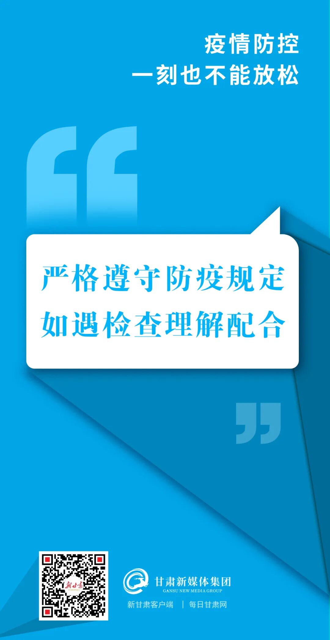 11月27日9时,我省发现1例境外输入性无症状感染者,该人员为女性,25岁。11月10日自美国抵达广州,入境后即在广州集中隔离14天,24日解除集中隔离后,于当日晚20时05分从广州白云机场乘坐CZ3251次航班,23时20分抵达兰州中川机场,当晚在兰州新区泰华国际大酒店住宿。25日上午随父母乘私家车返回武威市凉州区家中后按我省疫情防控要求居家健康监测。26日在武威市凉州区东大街社区卫生服务中心采集咽拭子标本,经凉州区和武威市疾控中心核酸检测,结果均为阳性。