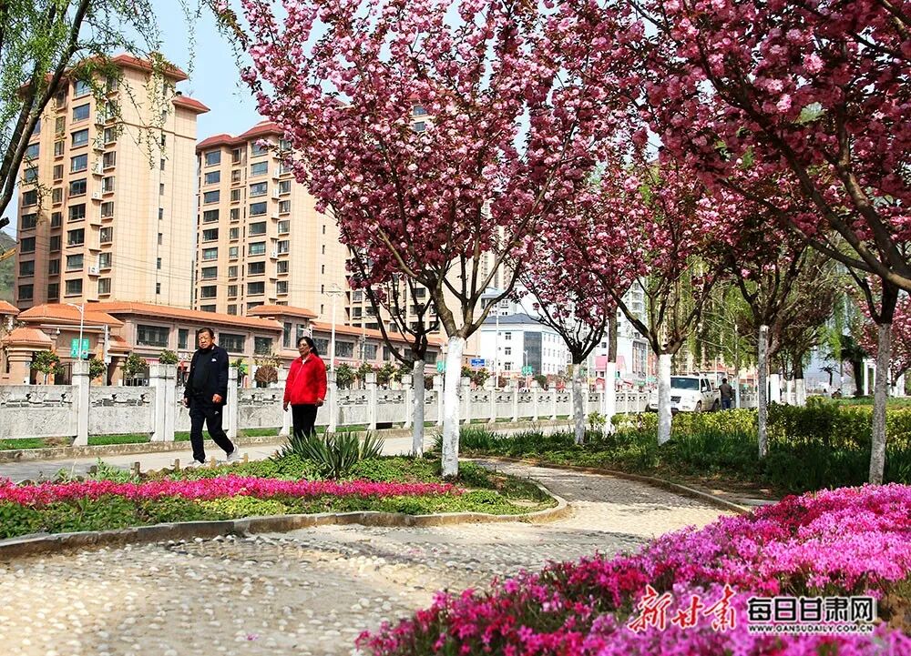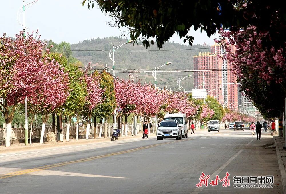 春日,行走在徽县金徽大道,沿线雕塑、小景观、绿树、草地、时花组成的绿化景观带,令人赏心悦目;而在徽县青泥路,樱花飞舞,凤山公园桃红柳绿,泰湖公园水天一色,西河道水清、岸绿、景美……如今的徽县处处是景、步步入画,城市“颜值”不断提升,“品质”持续增强。