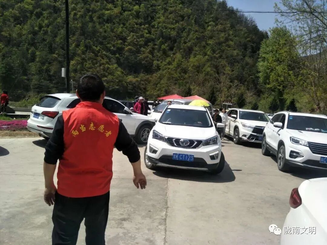 新时代文明实践志愿者们自发当起了护花使者。“请把车停入停车场,不要占道停车”,交警队的护花使者们对着络绎不绝的车流,一遍一遍的劝导着;“疫情防控不能放松,请戴上口罩”卫生院的护花使者给没戴口罩的游人递上口罩;“不要在花丛里拍照,踩到花儿花儿也会哭的”站儿巷镇的干部和附近的村民耐心地劝说着;每天傍晚,游人散尽时,志愿者背起消毒水,开始给公共设施进行消毒。