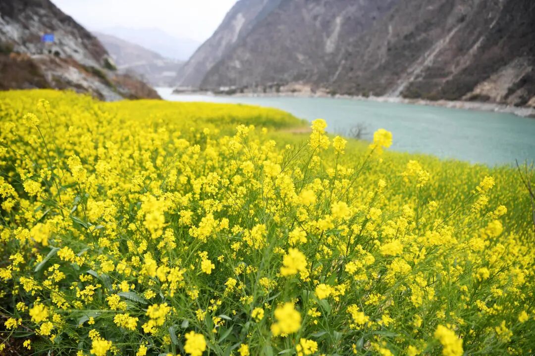 陇南市文县白龙江畔盛开的油菜花。新华社记者 陈斌 摄