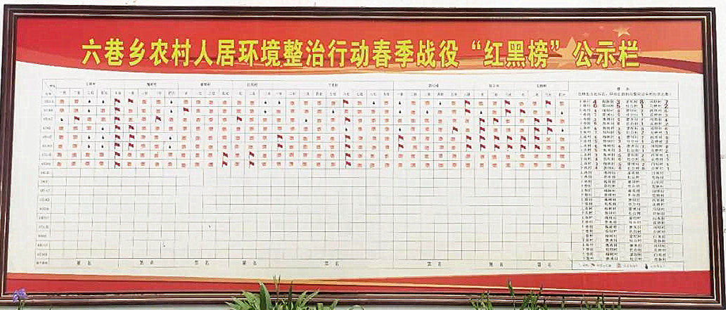 西和县六巷乡成立农村人居环境整治行动春季战役工作领导小组,每五天对各村各社人居整治工作进行评比,对评比较好的上“红榜”,较差的上“黑榜”。各村社设立户内环境卫生“红榜”,对农户房前屋后、院落、室内、厨房、厕所进行量化评分,较好的上“红榜”,较差的在微信群进行无记名通报,通过正负面现象的对比,推动各村、社、户互相监督、互相比较、互相促进,形成“人人关心人居环境改善、人人参与人居环境改善、人人都为人居环境改善做奉献”的浓厚氛围。