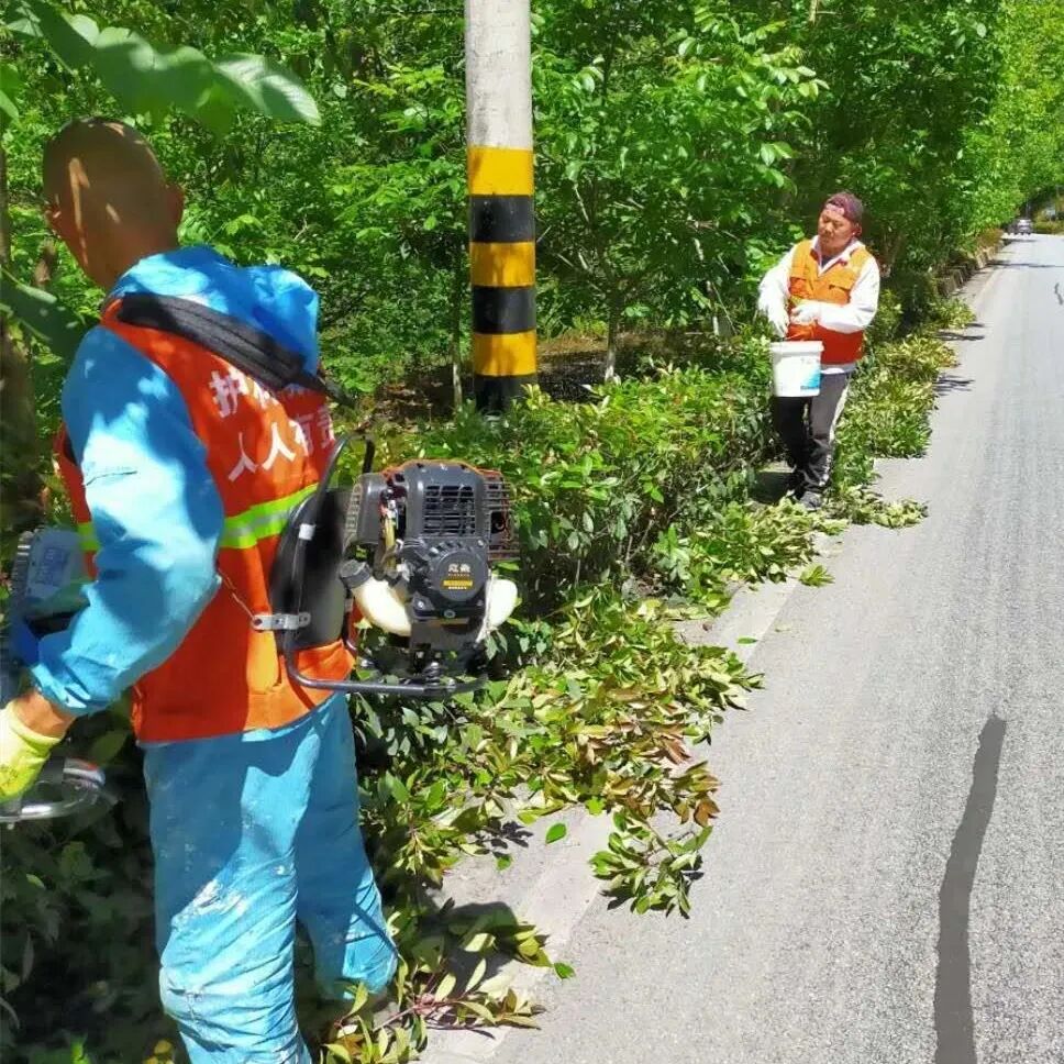 同时对国道沿线和村内的小景点、小花园、绿色长廊进行管护和杂草清除,灌溉、修建、施肥,并对各小景点进行红叶石楠等品种行道树的栽植补植工作。