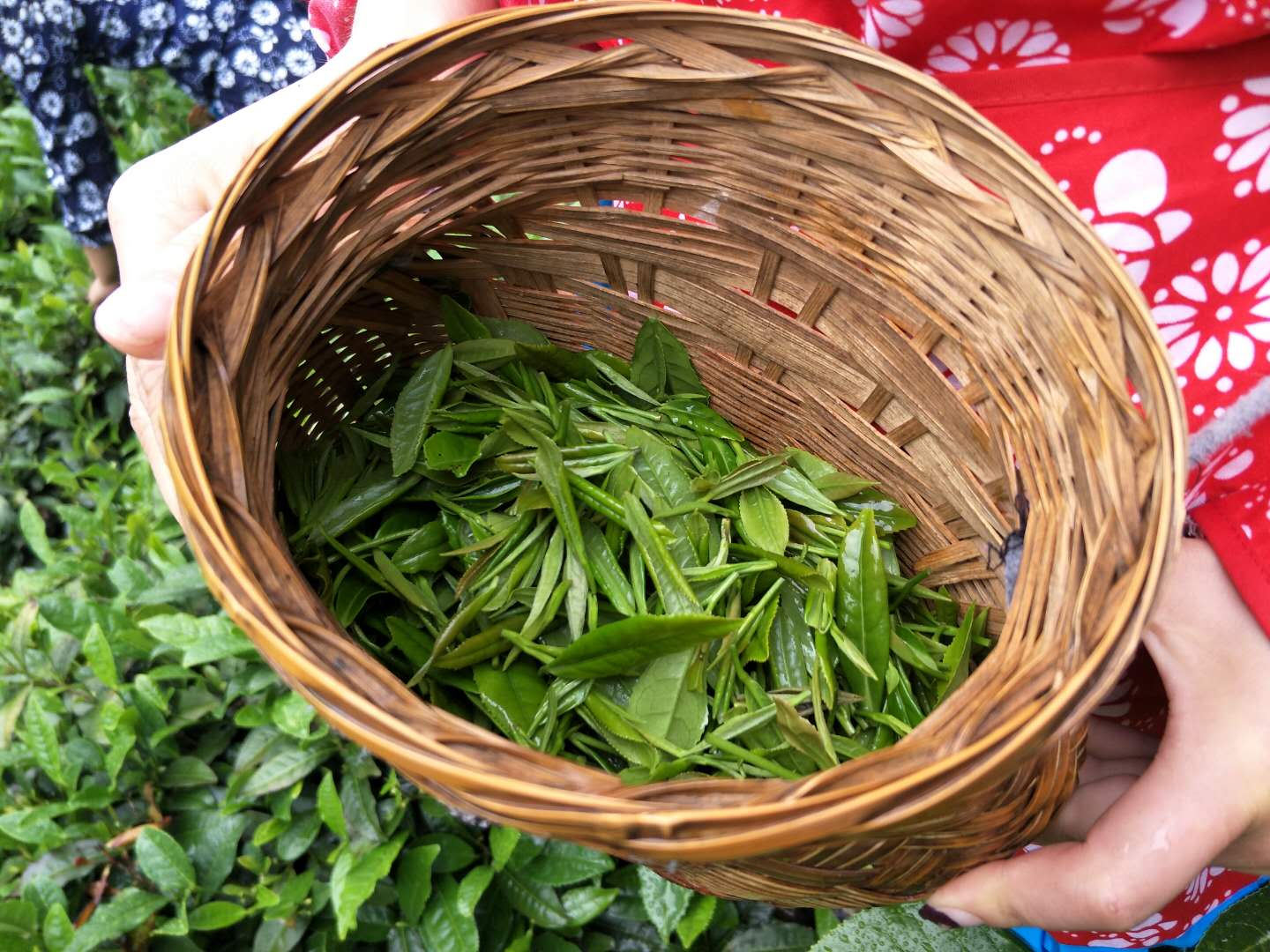 这是康县的茶农刚刚采摘的茶叶。焦杨红 摄