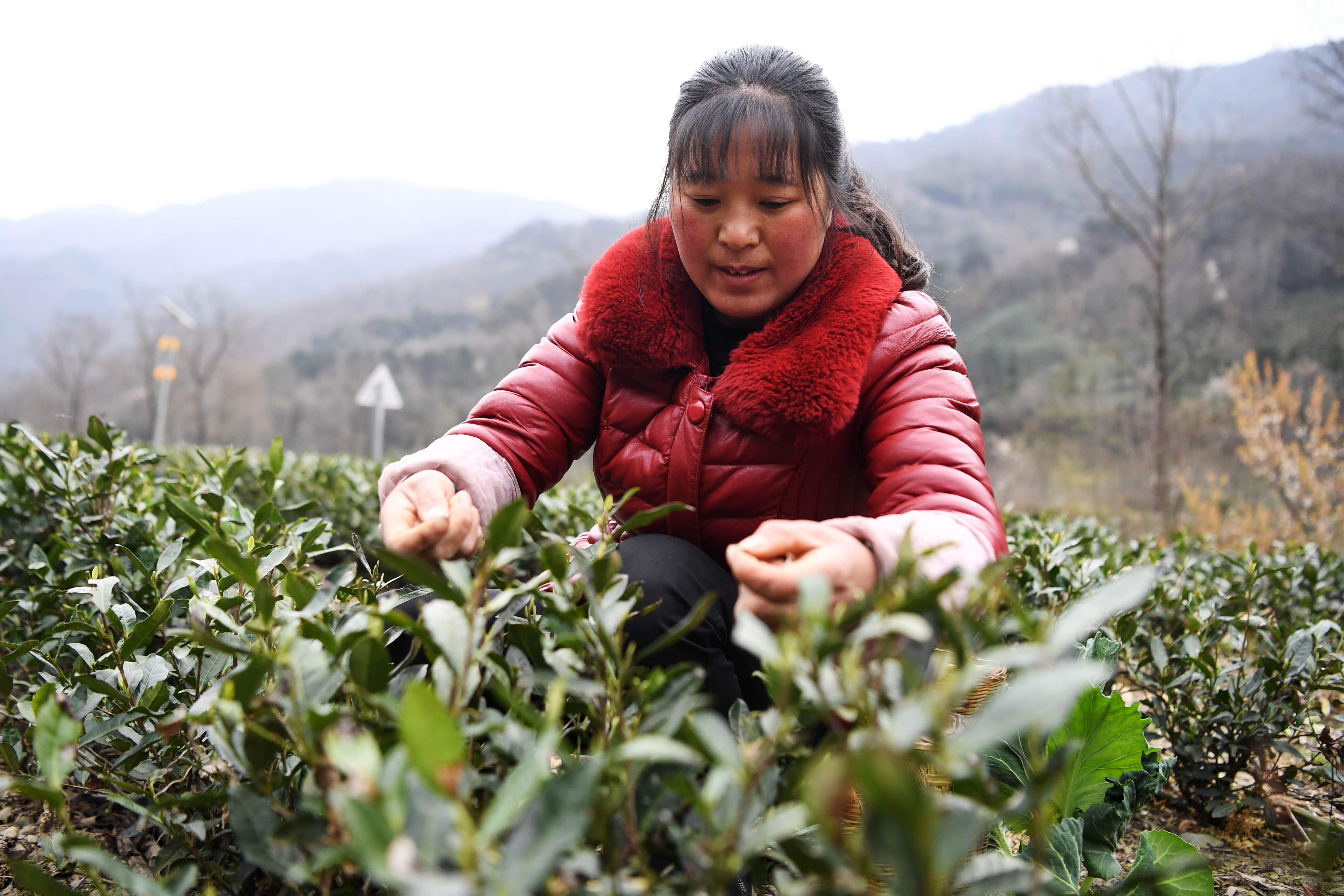 3月11日,茶农在文县碧口镇李子坝村的茶园内采摘春茶。新华社记者 陈斌 摄