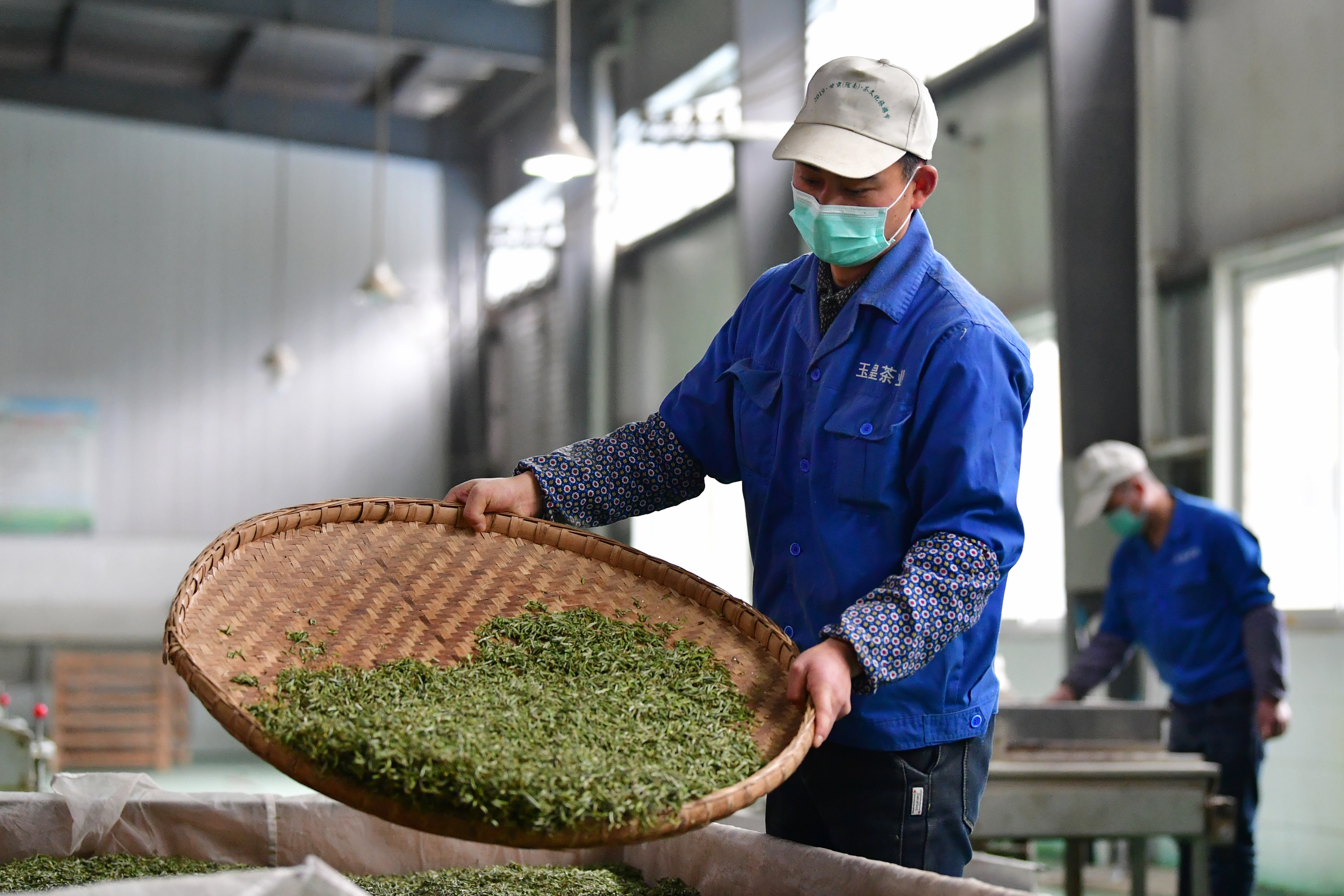 3月11日,文县玉皇茶厂的工人在生产车间加工刚刚采收的春茶。新华社记者 陈斌 摄